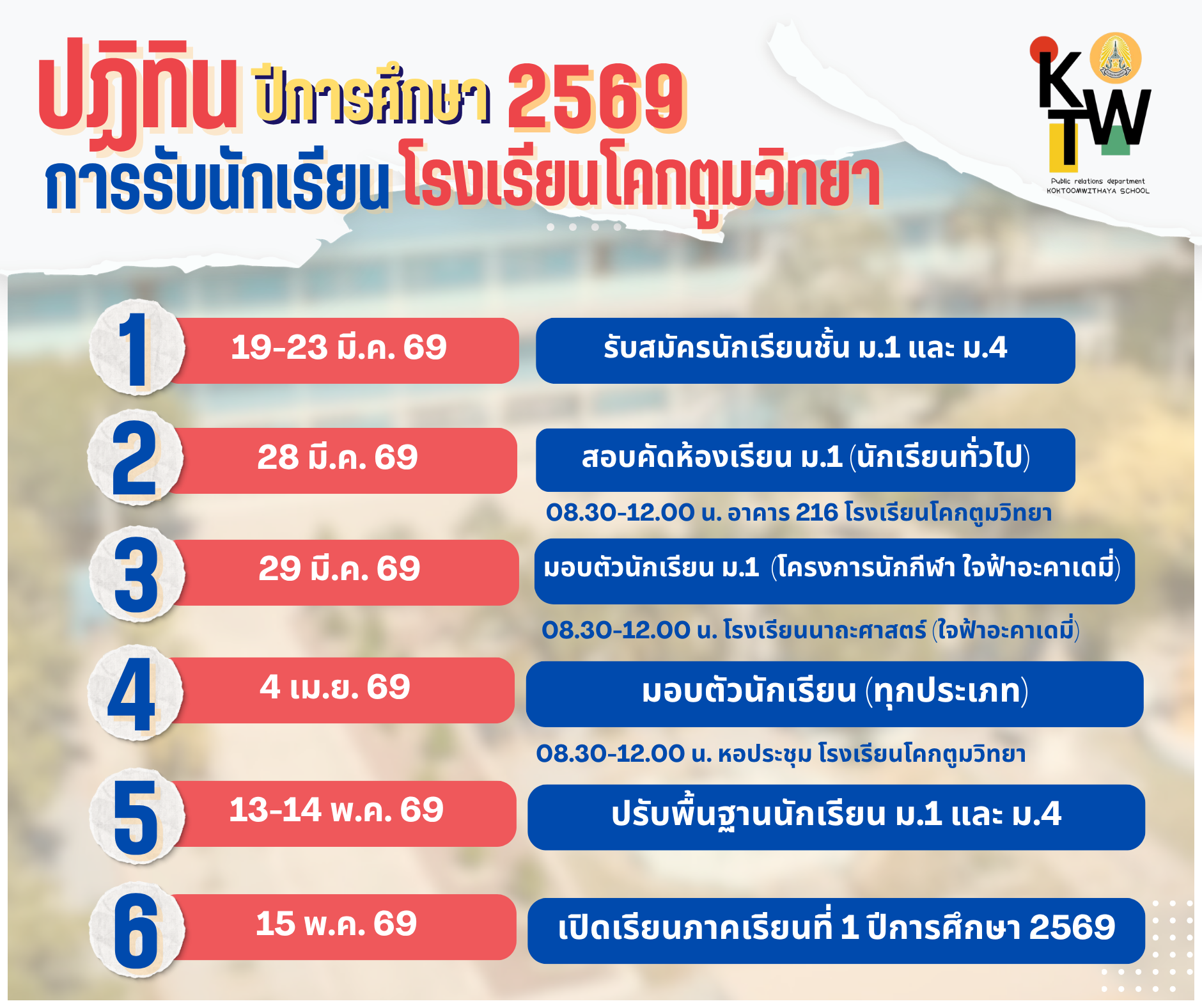 ปฏิทินการรับนักเรียน ปีการศึกษา 2569