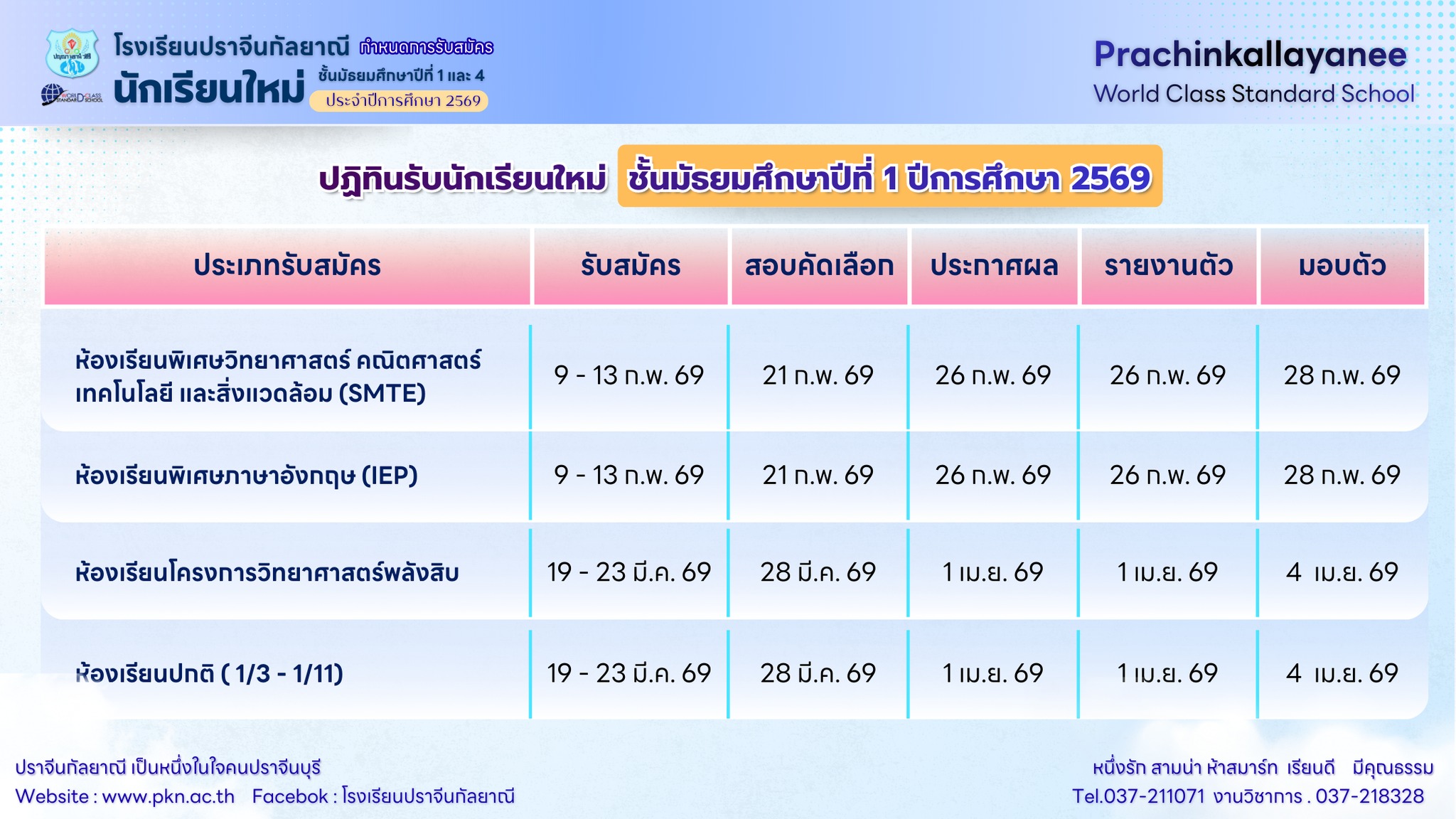 ชั้นมัธยมศึกษาปีที่ 1 วันเสาร์ที่ 28 มีนาคม 2569