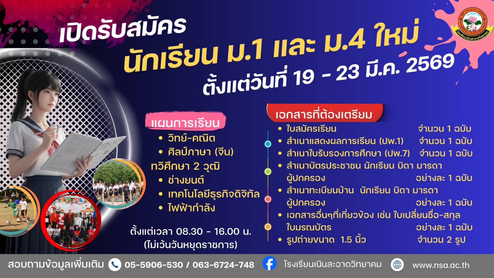 ติดต่อสอบถามเพิ่มเติมได้ที่ เว็บไซต์ http://nsa.ac.th/ โทร 055-906530 / 063-672-4748 Fackbook โรงเรียนเนินสะอาดวิทยาคม
