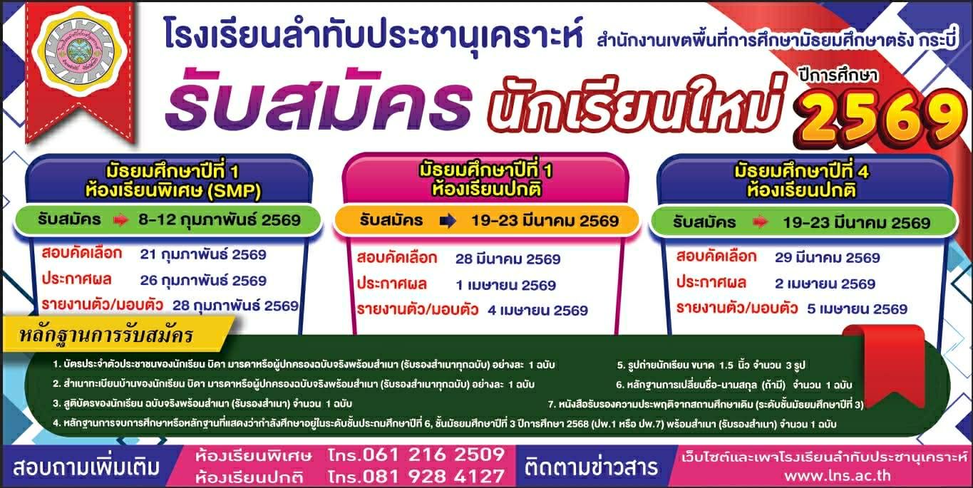 รับสมัครนักเรียนมัธยมศึกษาปีที่ ๑ และมัธยมศึกษาปีที่ ๔ ปีการศึกษา ๒๕๖๘