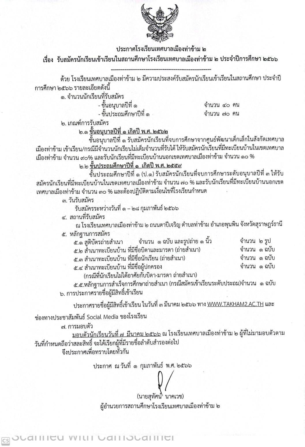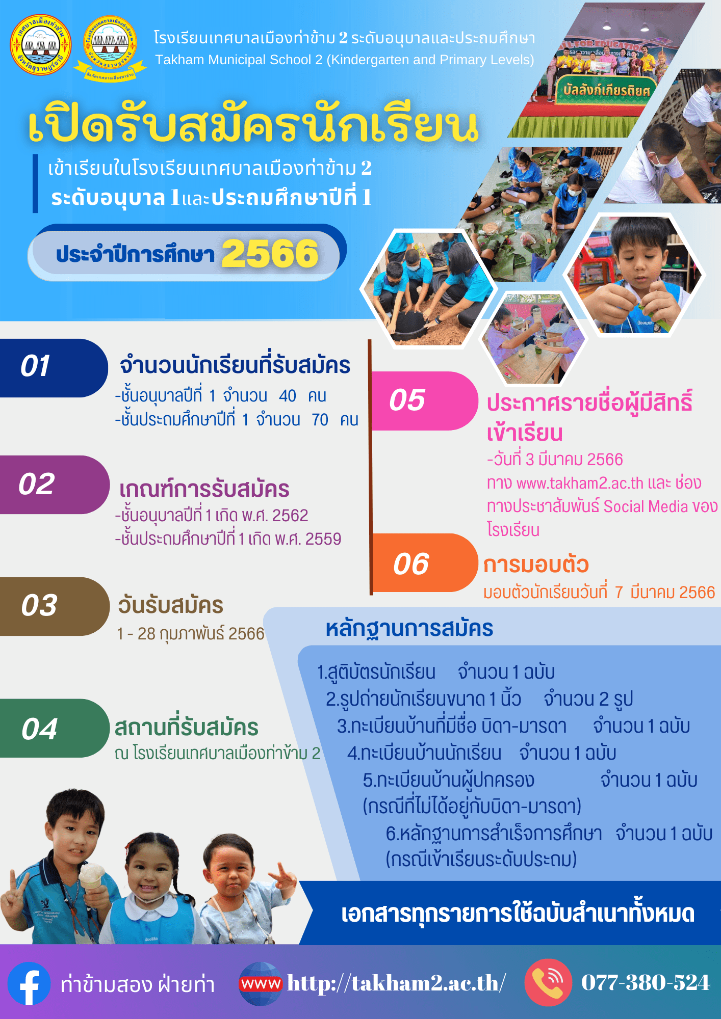 รับสมัครนักเรียนเข้าเรียนโรงเรียนเทศบาลเมืองท่าข้าม 2 ประจำปีการศึกษา 2566