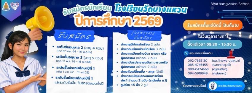 สามารถติดตามข่าวสารได้ทาง https://www.facebook.com/watbangwaenschool/