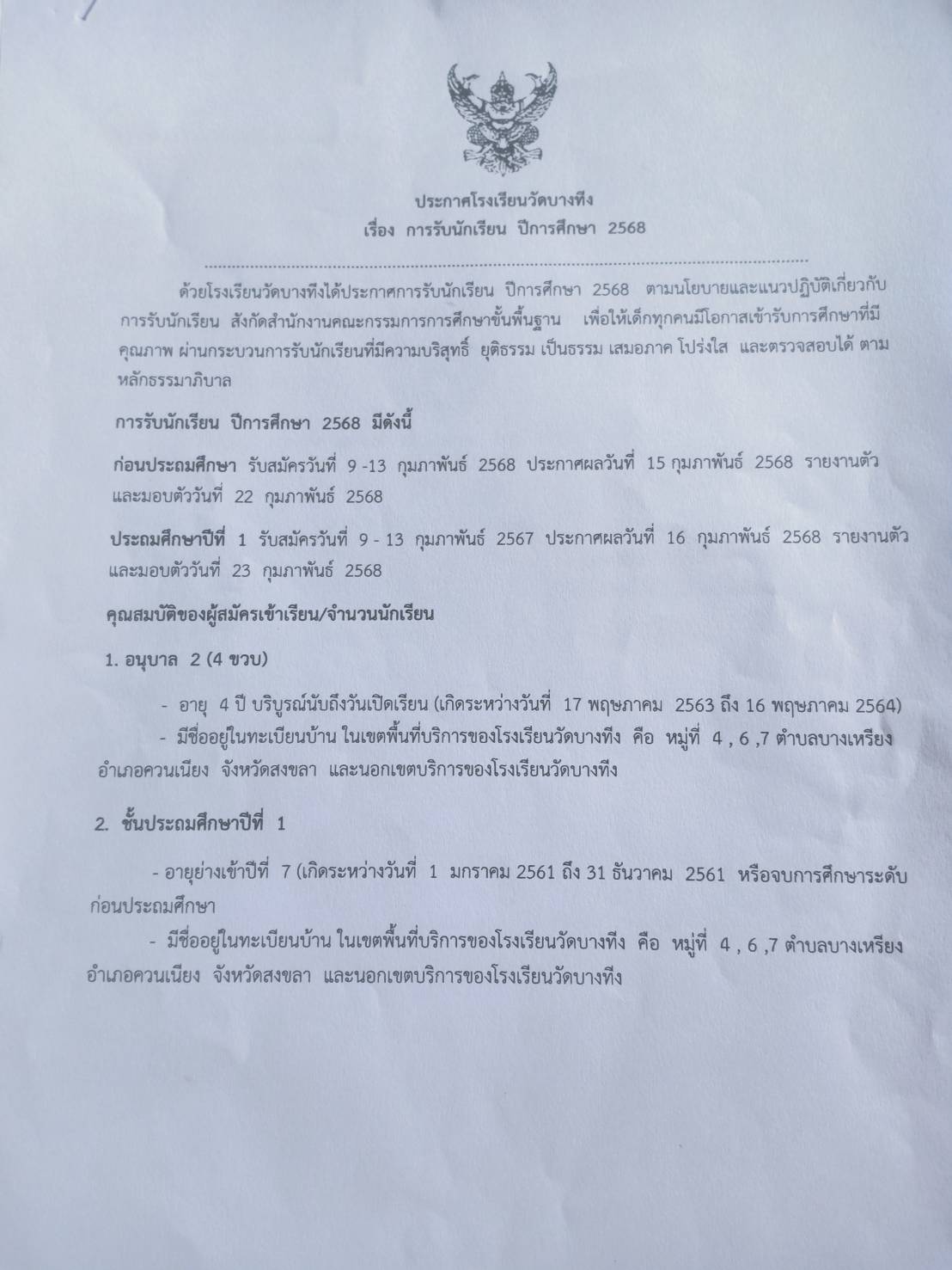 หมู่ที่ 7 บ้านบางทีง ตำบลบางเหรียง อำเภอควนเนียง จังหวัดสงขลา