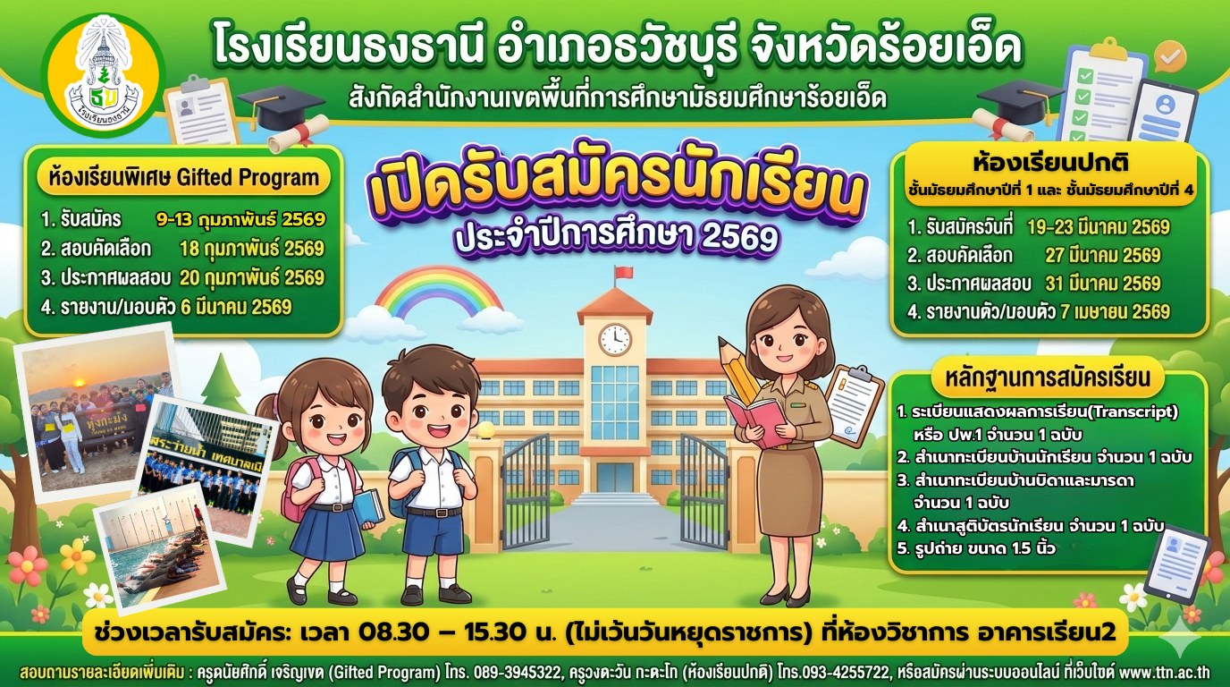 ประกาศรับสมัครนักเรียนโรงเรียนธงธานี ปีการศึกษา 2569